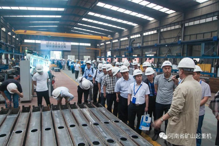24日下午,河南礦山迎來了多批重要的客人,國家質(zhì)檢總局特種設備局相關(guān)領(lǐng)導,中國重型機械工業(yè)協(xié)會相關(guān)領(lǐng)導、重機協(xié)會橋式起重機專業(yè)委員會300家會員單位和全國800家起重裝備整機制造商、配套件制造商及服務商分批蒞臨河南礦山,實地參觀考察河南礦山。公司創(chuàng)始人崔培軍、總經(jīng)理任海濤分別接待,并熱情的向來訪客人介紹了公司概況、工藝革新及機器人換人計劃等。