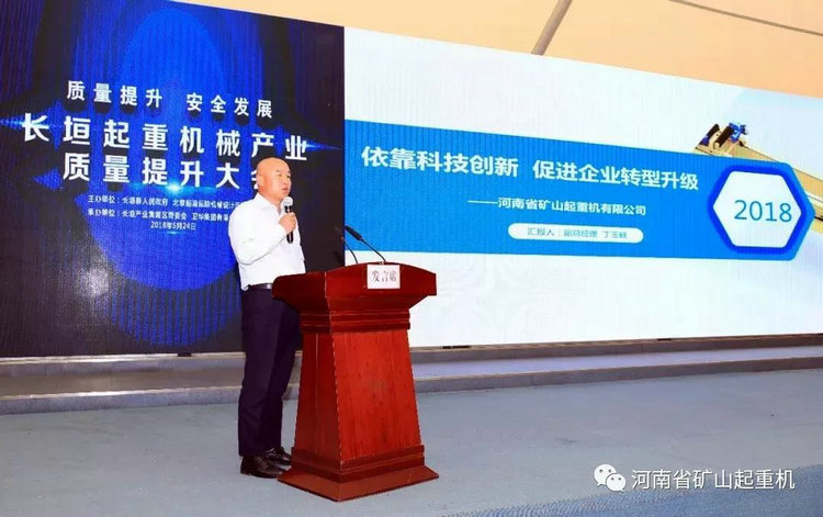 公司質(zhì)量副總丁玉岐在起重機械產(chǎn)業(yè)質(zhì)量提升大會上做專題發(fā)言